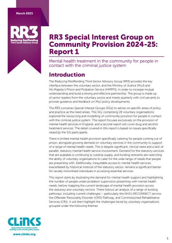 Clinks is committed to ensuring the vital role of the voluntary sector is recognised and advocating for health services that better meet the needs of people in contact with the criminal justice system.